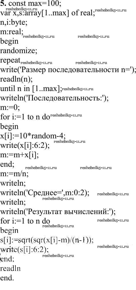 Готовая домашняя работа с ответами по Информатике за 10 класс Семакин, Хеннер, Шеина Учебник Базовый уровень Бином 2017 ФГОС - Работа 3.6. Программирование обработки одномерных массивов 5