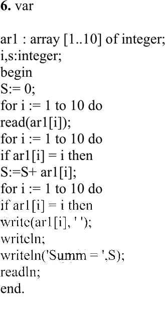 Готовая домашняя работа с ответами по Информатике за 10 класс Семакин, Хеннер, Шеина Учебник Базовый уровень Бином 2017 ФГОС - Работа 3.6. Программирование обработки одномерных массивов 6