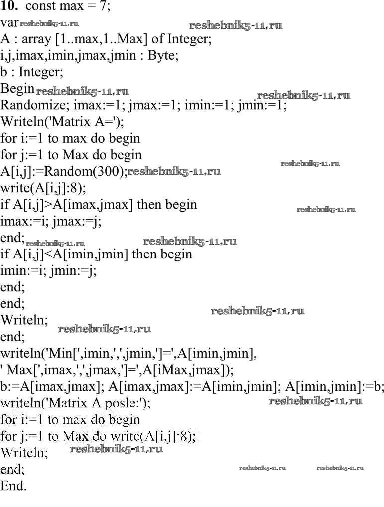 Готовая домашняя работа с ответами по Информатике за 10 класс Семакин, Хеннер, Шеина Учебник Базовый уровень Бином 2017 ФГОС - Работа 3.7. Программирование обработки двумерных массивов 10