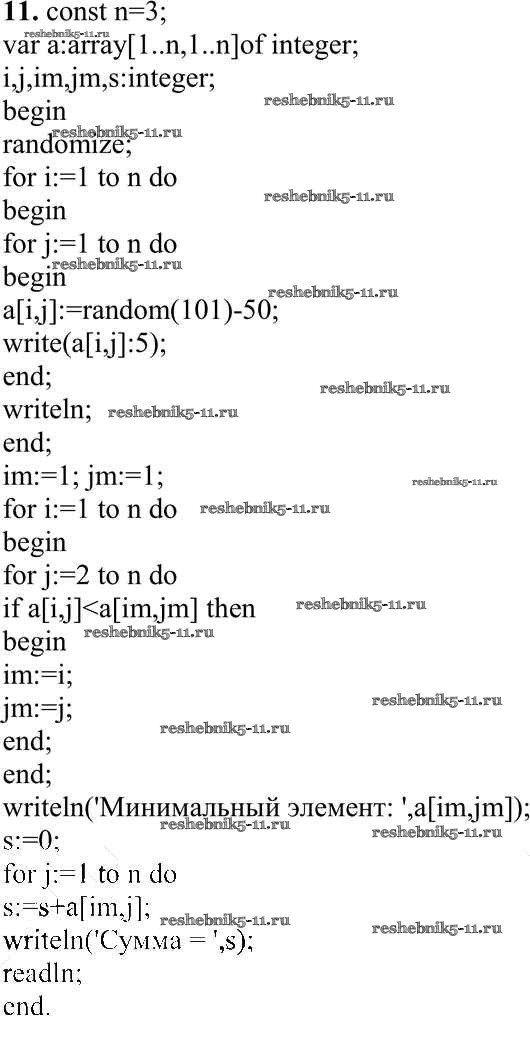 Готовая домашняя работа с ответами по Информатике за 10 класс Семакин, Хеннер, Шеина Учебник Базовый уровень Бином 2017 ФГОС - Работа 3.7. Программирование обработки двумерных массивов 11
