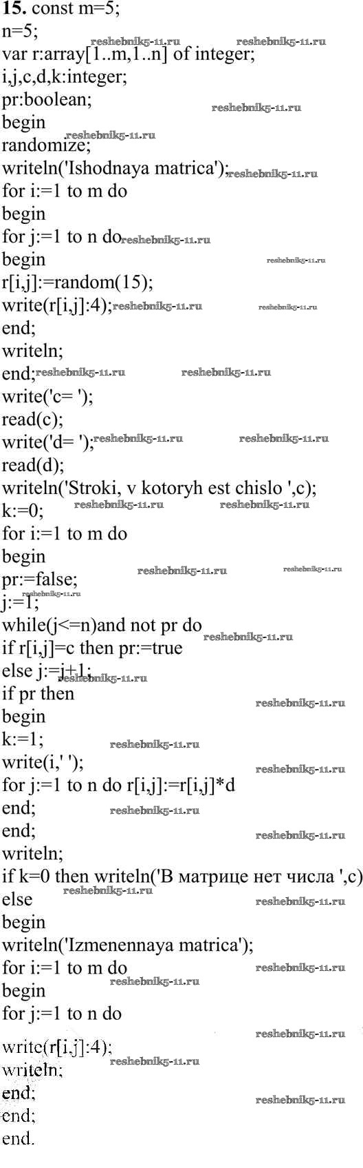 Готовая домашняя работа с ответами по Информатике за 10 класс Семакин, Хеннер, Шеина Учебник Базовый уровень Бином 2017 ФГОС - Работа 3.7. Программирование обработки двумерных массивов 15