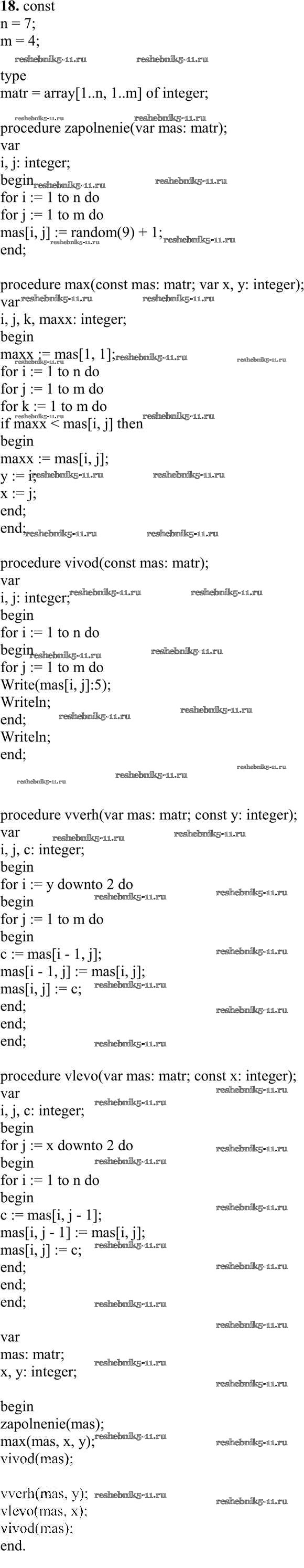 Готовая домашняя работа с ответами по Информатике за 10 класс Семакин, Хеннер, Шеина Учебник Базовый уровень Бином 2017 ФГОС - Работа 3.7. Программирование обработки двумерных массивов 18