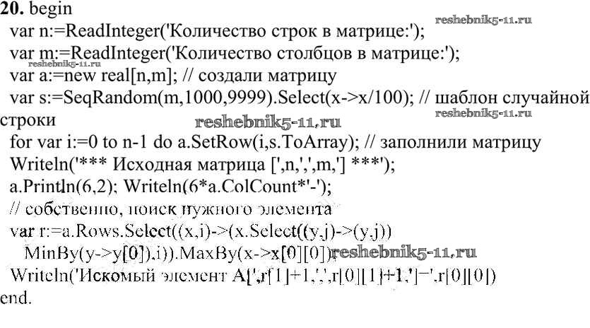 Готовая домашняя работа с ответами по Информатике за 10 класс Семакин, Хеннер, Шеина Учебник Базовый уровень Бином 2017 ФГОС - Работа 3.7. Программирование обработки двумерных массивов 20