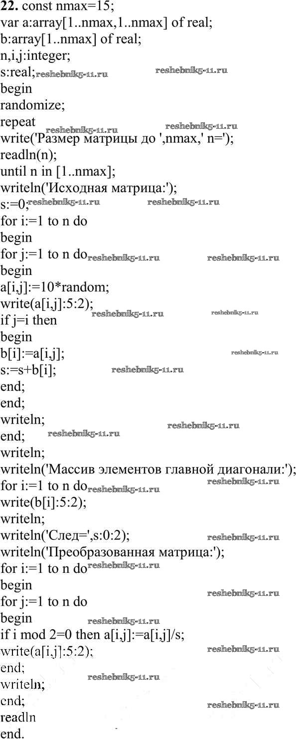 Готовая домашняя работа с ответами по Информатике за 10 класс Семакин, Хеннер, Шеина Учебник Базовый уровень Бином 2017 ФГОС - Работа 3.7. Программирование обработки двумерных массивов 22