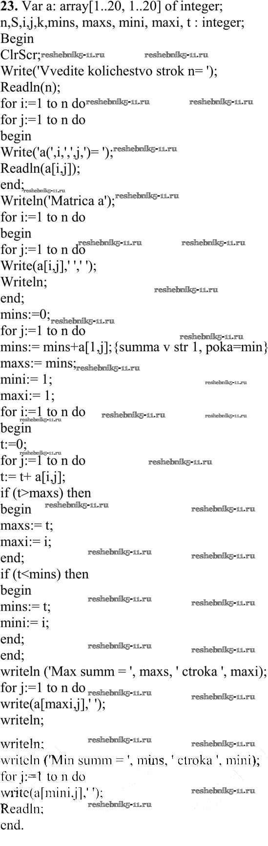 Готовая домашняя работа с ответами по Информатике за 10 класс Семакин, Хеннер, Шеина Учебник Базовый уровень Бином 2017 ФГОС - Работа 3.7. Программирование обработки двумерных массивов 23