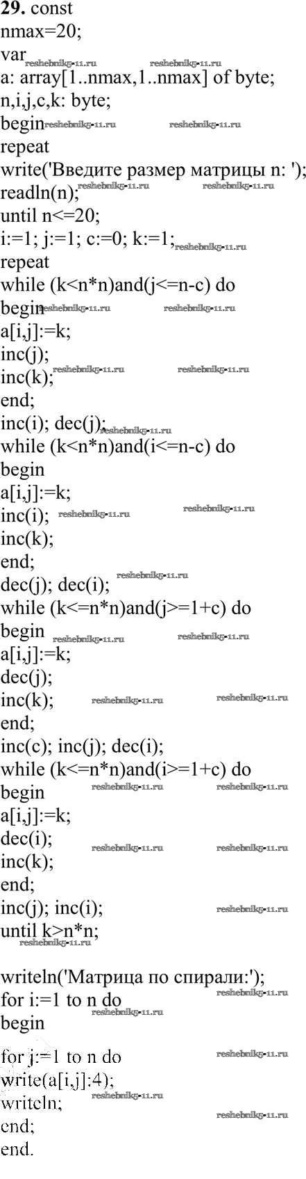 Готовая домашняя работа с ответами по Информатике за 10 класс Семакин, Хеннер, Шеина Учебник Базовый уровень Бином 2017 ФГОС - Работа 3.7. Программирование обработки двумерных массивов 29