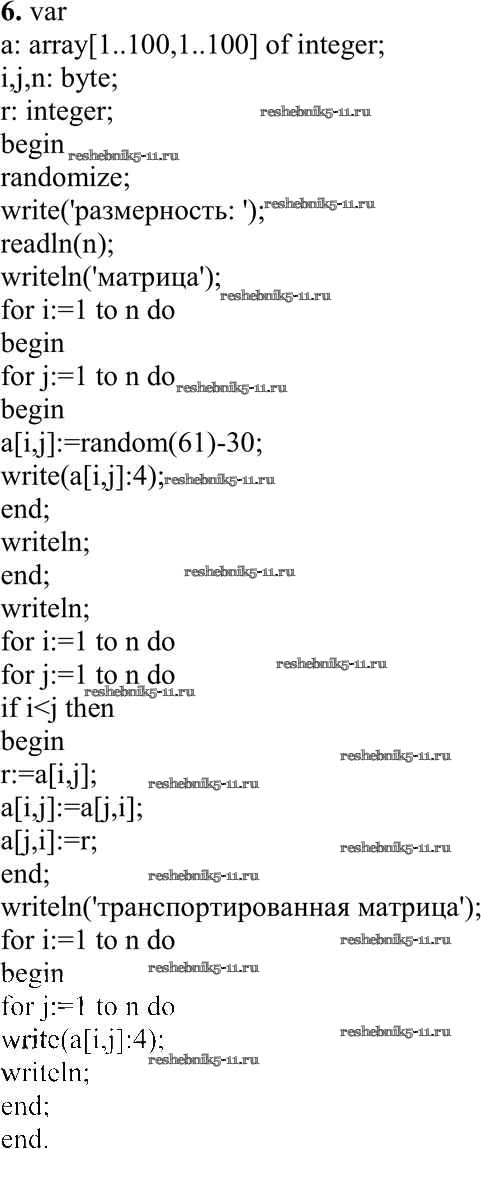 Готовая домашняя работа с ответами по Информатике за 10 класс Семакин, Хеннер, Шеина Учебник Базовый уровень Бином 2017 ФГОС - Работа 3.7. Программирование обработки двумерных массивов 6