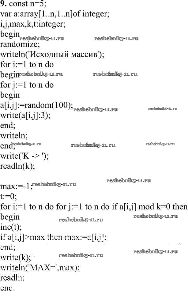 Готовая домашняя работа с ответами по Информатике за 10 класс Семакин, Хеннер, Шеина Учебник Базовый уровень Бином 2017 ФГОС - Работа 3.7. Программирование обработки двумерных массивов 9