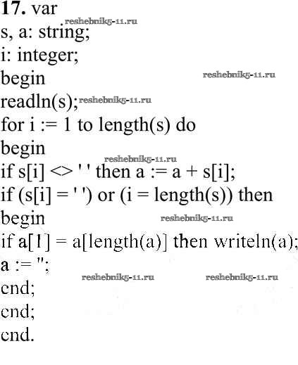 Готовая домашняя работа с ответами по Информатике за 10 класс Семакин, Хеннер, Шеина Учебник Базовый уровень Бином 2017 ФГОС - Работа 3.8. Программирование обработки строк символов 17