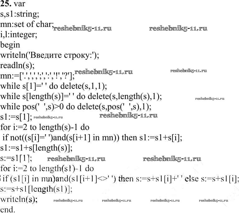 Готовая домашняя работа с ответами по Информатике за 10 класс Семакин, Хеннер, Шеина Учебник Базовый уровень Бином 2017 ФГОС - Работа 3.8. Программирование обработки строк символов 25