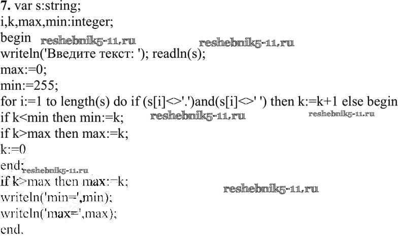 Готовая домашняя работа с ответами по Информатике за 10 класс Семакин, Хеннер, Шеина Учебник Базовый уровень Бином 2017 ФГОС - Работа 3.8. Программирование обработки строк символов 7