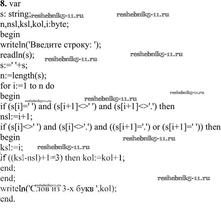 Готовая домашняя работа с ответами по Информатике за 10 класс Семакин, Хеннер, Шеина Учебник Базовый уровень Бином 2017 ФГОС - Работа 3.8. Программирование обработки строк символов 8