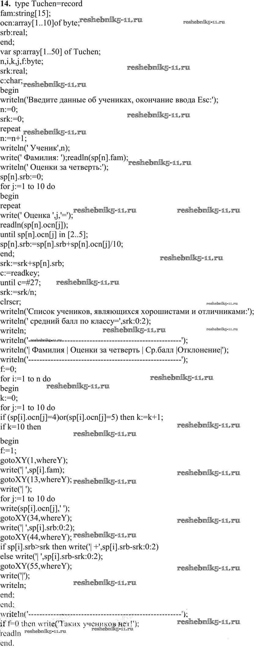 Готовая домашняя работа с ответами по Информатике за 10 класс Семакин, Хеннер, Шеина Учебник Базовый уровень Бином 2017 ФГОС - Работа 3.9. Программирование обработки записей 14