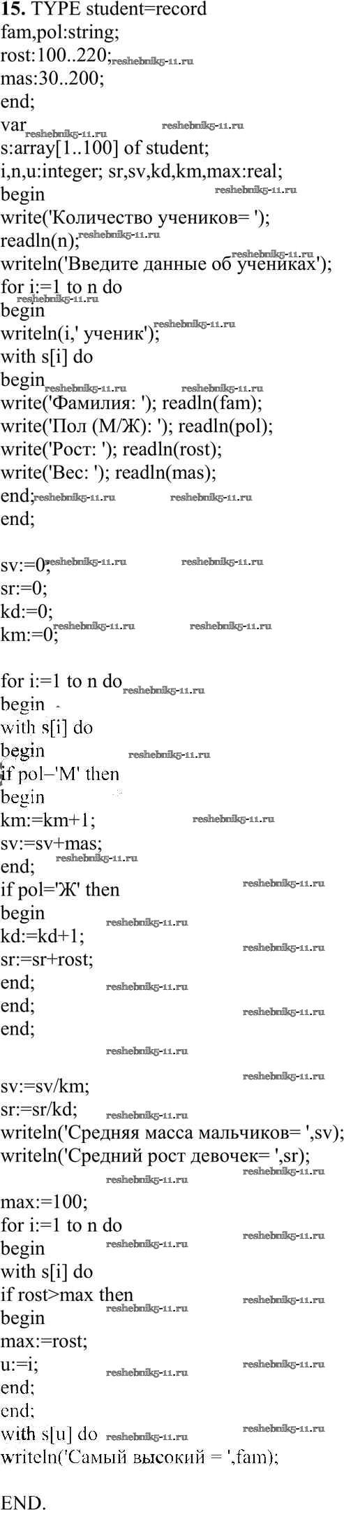 Готовая домашняя работа с ответами по Информатике за 10 класс Семакин, Хеннер, Шеина Учебник Базовый уровень Бином 2017 ФГОС - Работа 3.9. Программирование обработки записей 15