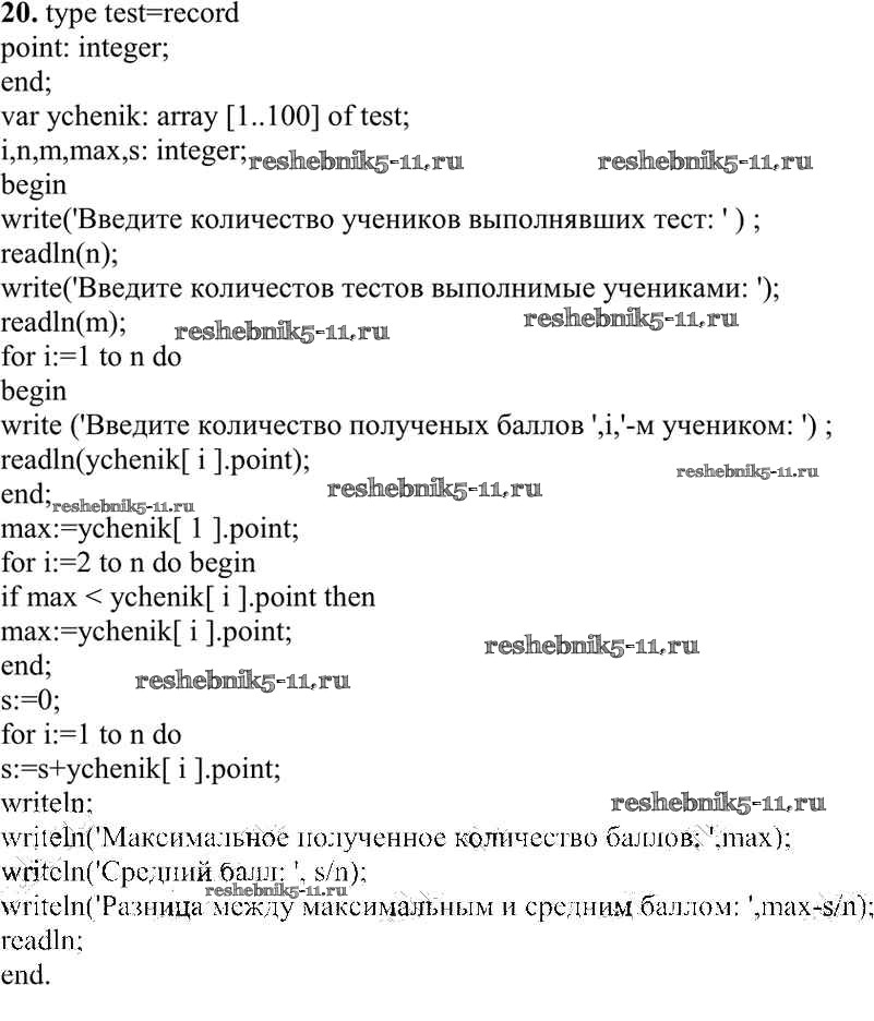 Готовая домашняя работа с ответами по Информатике за 10 класс Семакин, Хеннер, Шеина Учебник Базовый уровень Бином 2017 ФГОС - Работа 3.9. Программирование обработки записей 20