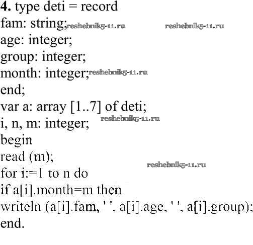 Готовая домашняя работа с ответами по Информатике за 10 класс Семакин, Хеннер, Шеина Учебник Базовый уровень Бином 2017 ФГОС - Работа 3.9. Программирование обработки записей 4