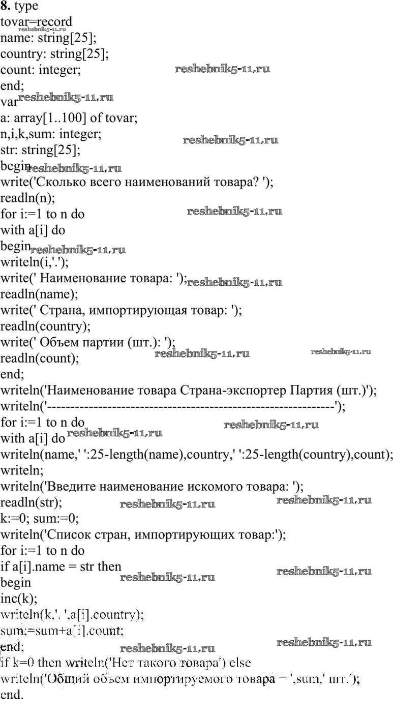 Готовая домашняя работа с ответами по Информатике за 10 класс Семакин, Хеннер, Шеина Учебник Базовый уровень Бином 2017 ФГОС - Работа 3.9. Программирование обработки записей 8