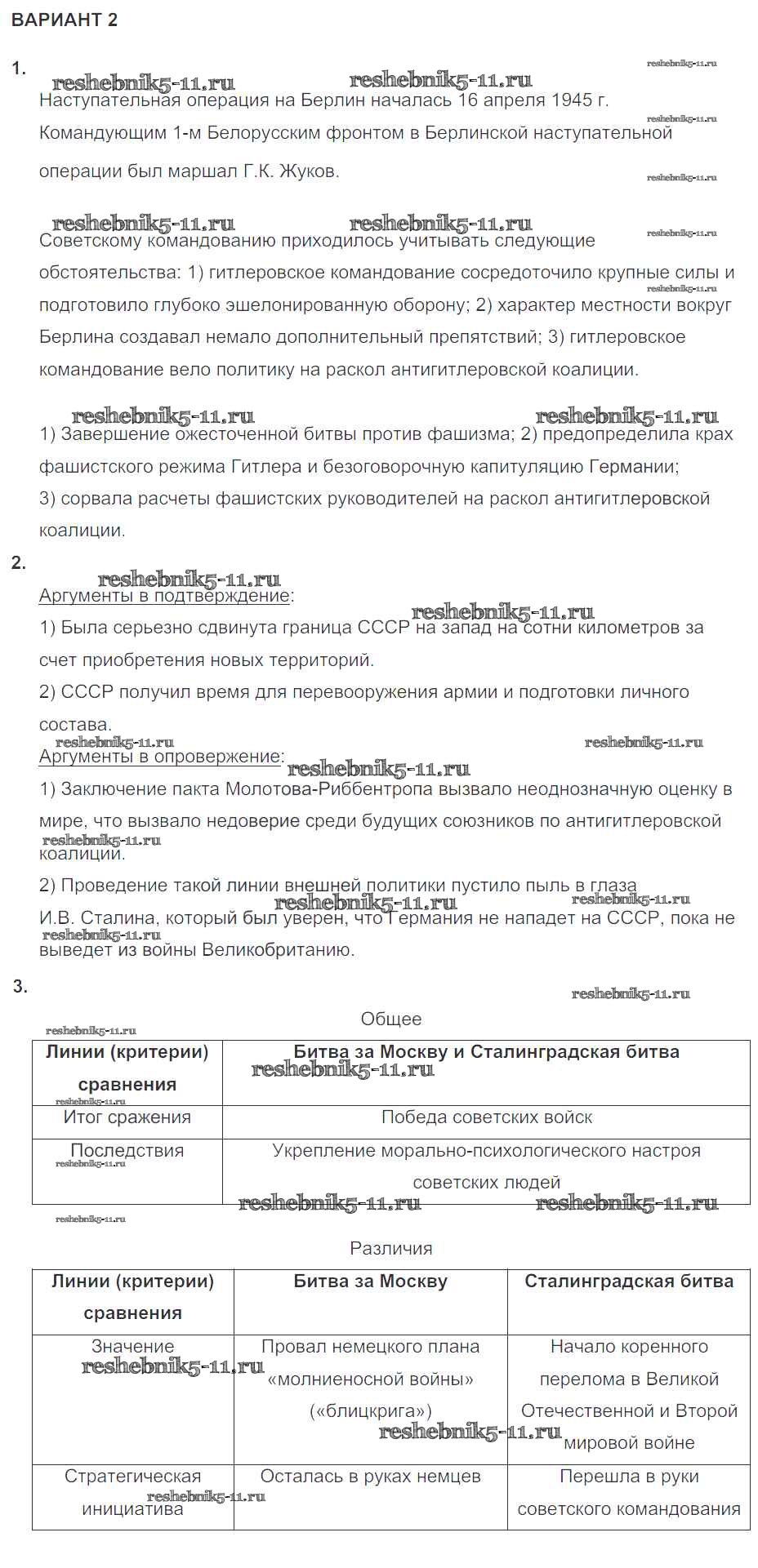 Готовая домашняя работа с ответами по Истории за 10 класс Артасов Контрольные работы УМК Просвещение 2017 ФГОС - КР №2 (варианты) 2