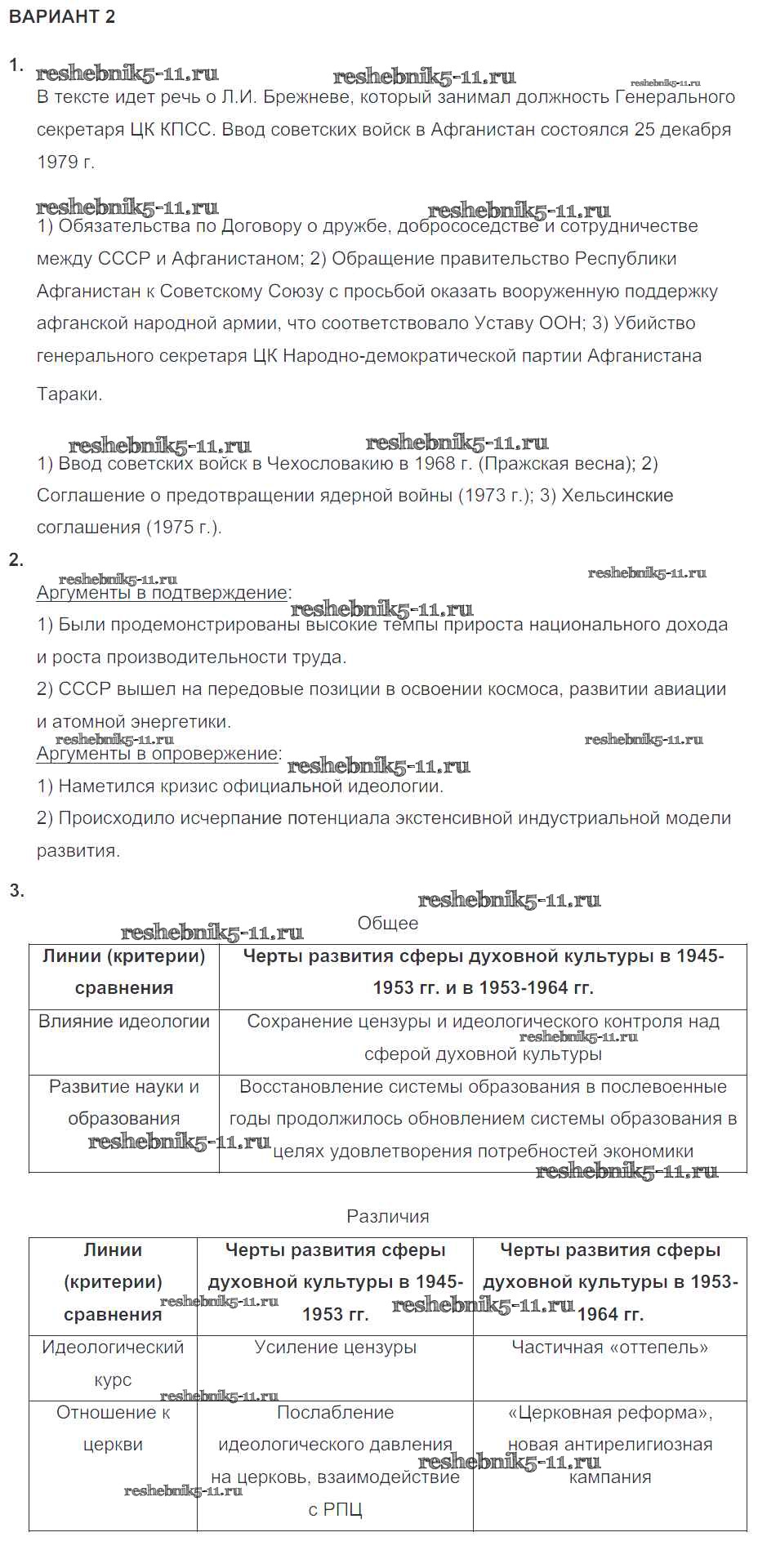 Готовая домашняя работа с ответами по Истории за 10 класс Артасов Контрольные работы УМК Просвещение 2017 ФГОС - КР №2 (варианты) 2