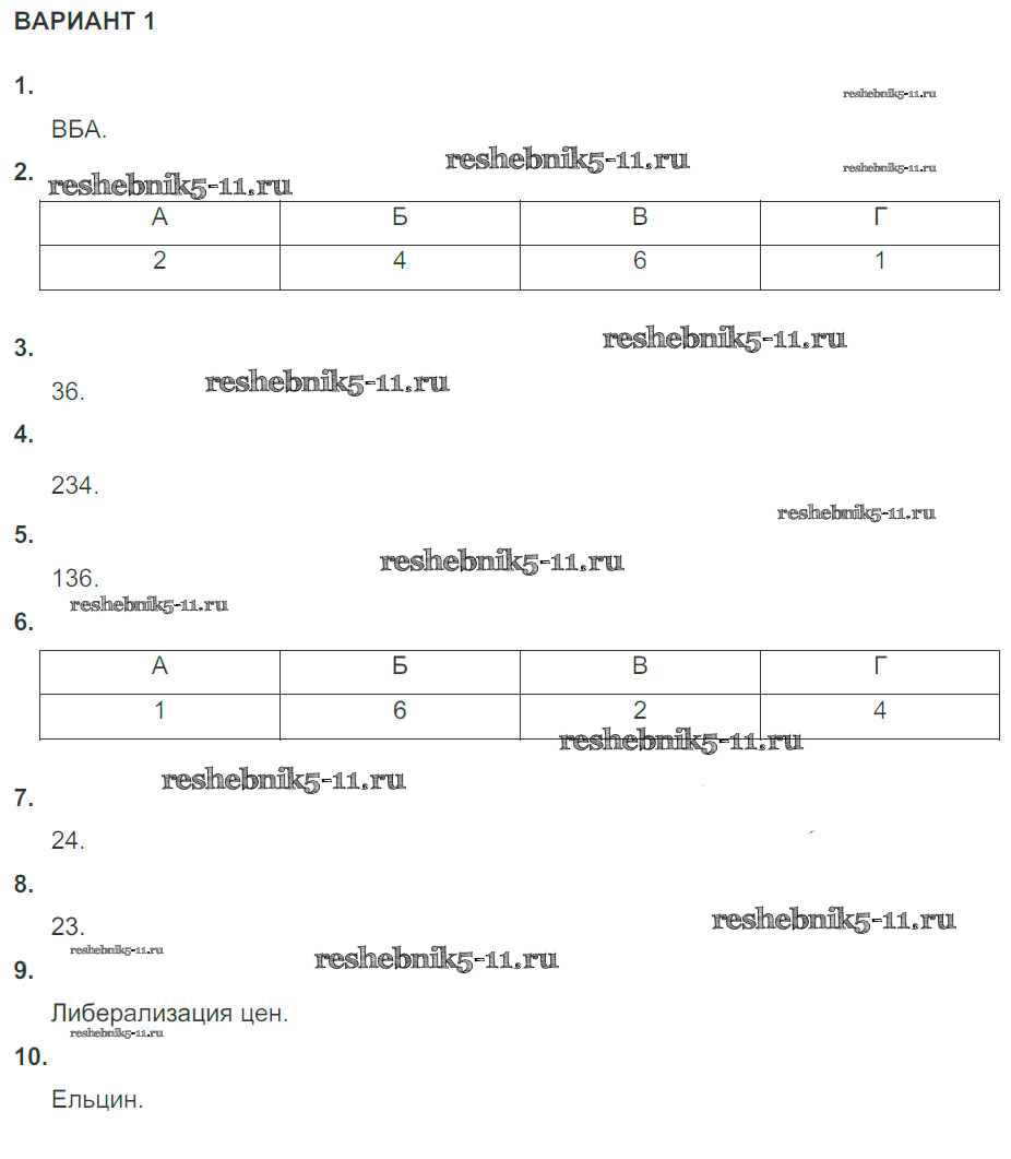 Готовая домашняя работа с ответами по Истории за 10 класс Артасов Контрольные работы УМК Просвещение 2017 ФГОС - КР №1 (варианты) 1