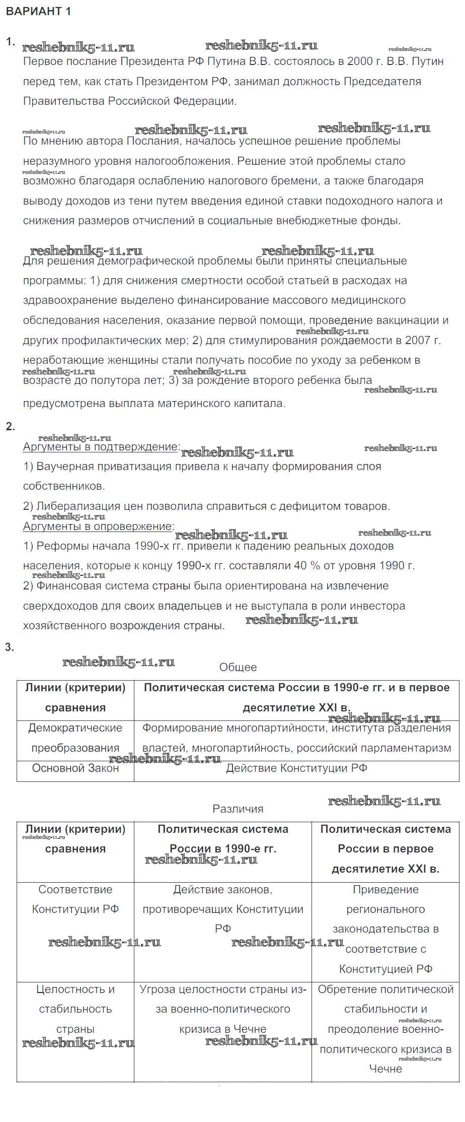 Готовая домашняя работа с ответами по Истории за 10 класс Артасов Контрольные работы УМК Просвещение 2017 ФГОС - КР №2 (варианты) 1