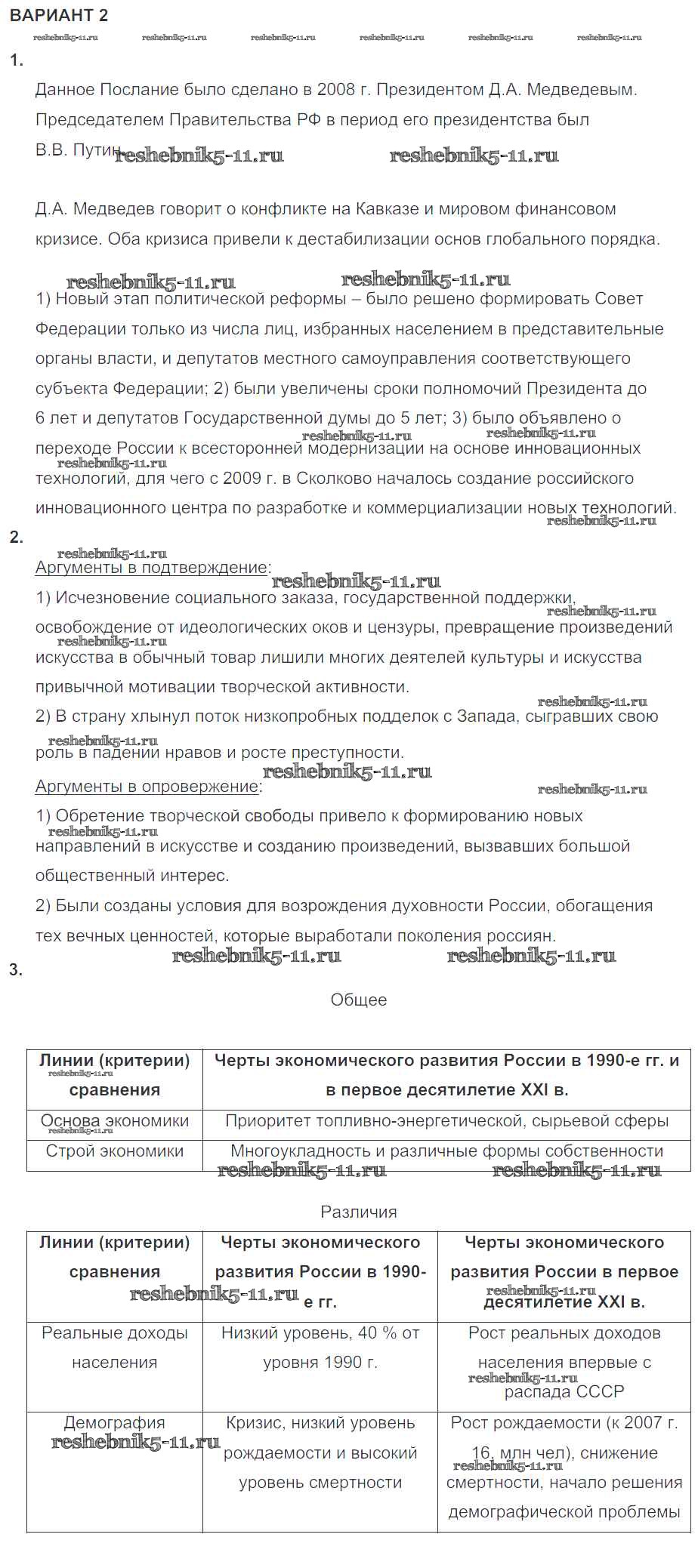 Готовая домашняя работа с ответами по Истории за 10 класс Артасов Контрольные работы УМК Просвещение 2017 ФГОС - КР №2 (варианты) 2