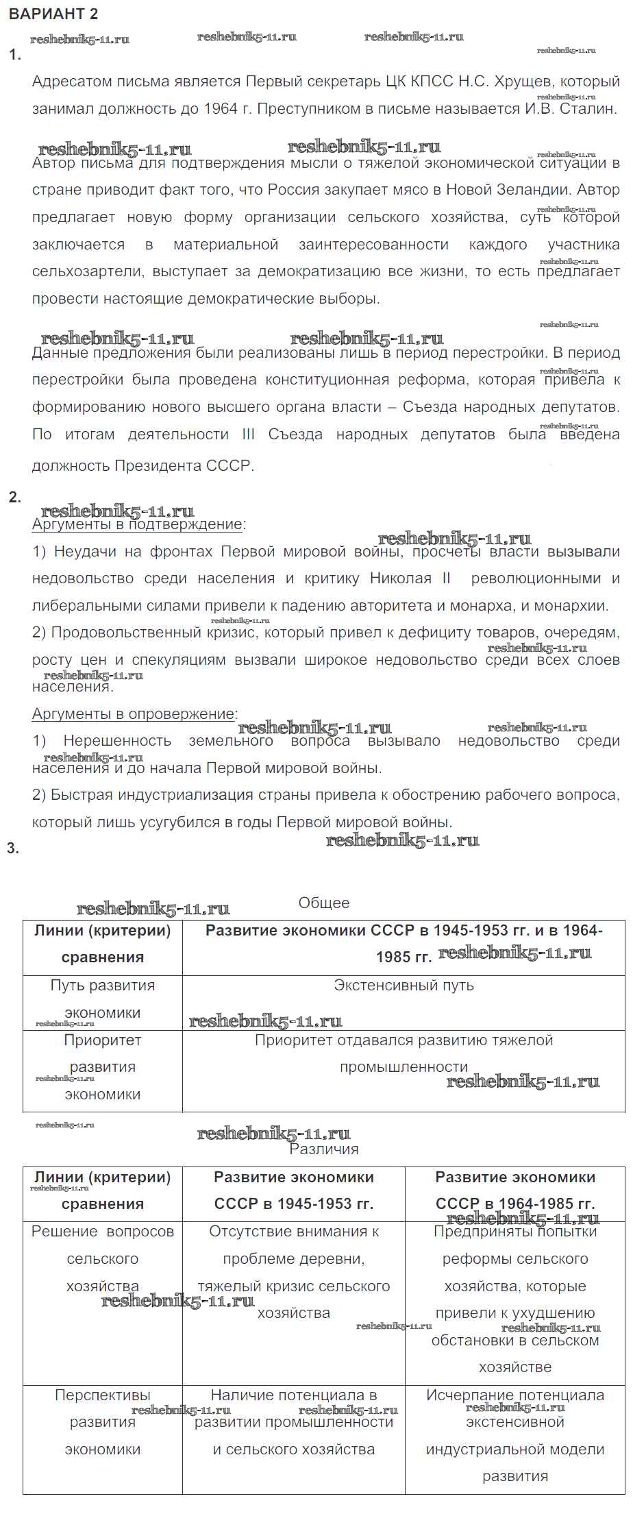 Готовая домашняя работа с ответами по Истории за 10 класс Артасов Контрольные работы УМК Просвещение 2017 ФГОС - КР №2 (варианты) 2