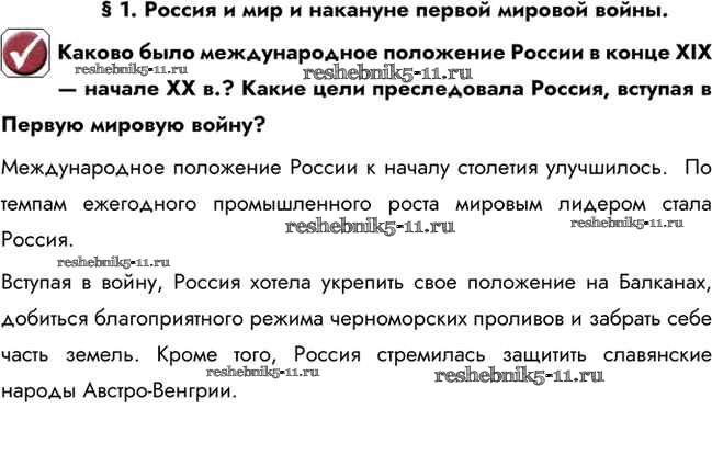 §1. Россия и мир накануне Первой мировой войны