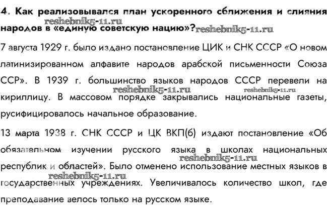 Решебник / советская национальная политика в 1930-е гг. / работа с текстом параграфа / 4