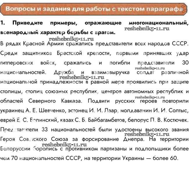 Решебник / народы СССР в борьбе с фашизмом / работа с текстом параграфа / 1