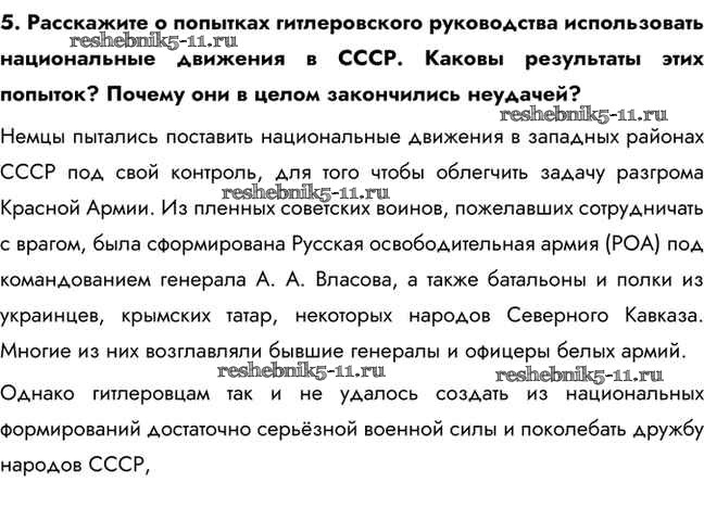 Решебник / народы СССР в борьбе с фашизмом / работа с текстом параграфа / 5