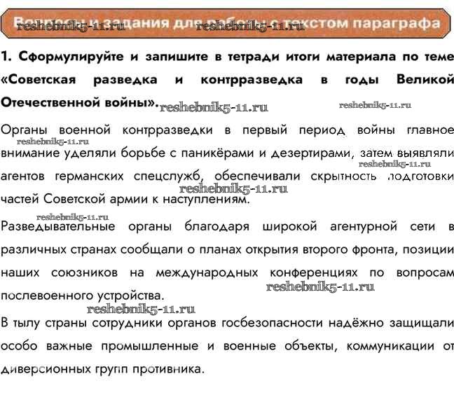 Решебник / советская разведка и контрразведка в годы Великой Отечественной войны / работа с текстом параграфа / 1