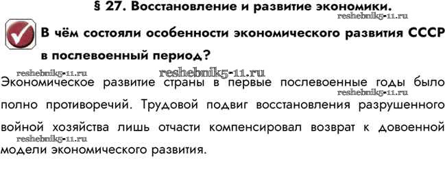 §27. Восстановление и развитие экономики
