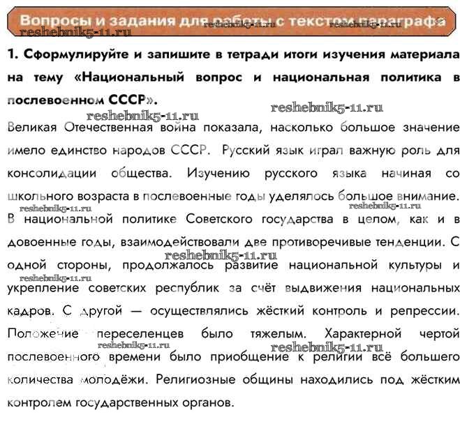 Решебник / национальный вопрос и национальная политика в послевоенном СССР / работа с текстом параграфа / 1