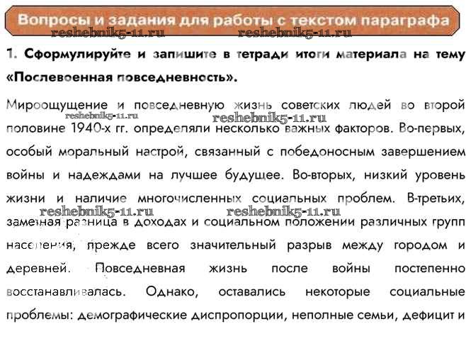 Решебник / послевоенная повседневность / работа с текстом параграфа / 1