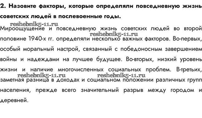 Решебник / послевоенная повседневность / работа с текстом параграфа / 2