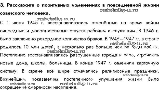 Решебник / послевоенная повседневность / работа с текстом параграфа / 3