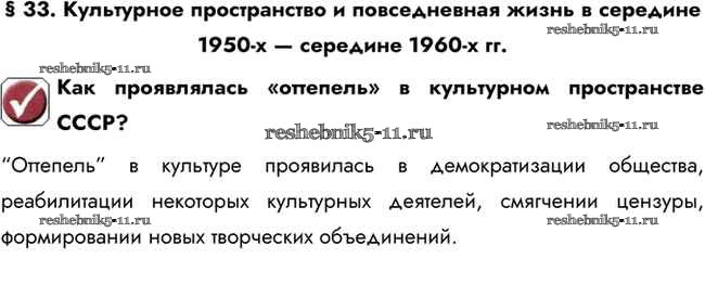 §33. Культурное пространство и повседневная жизнь в середине 1950-х — середине 1960-х гг.