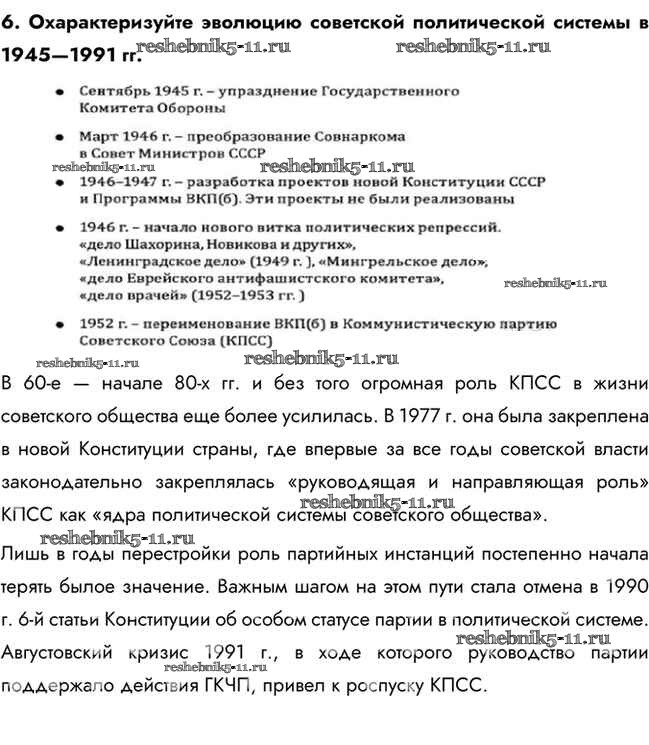 История за 10 класс Горинов Учебник Просвещение повторяем и делаем выводы. глава 4 6