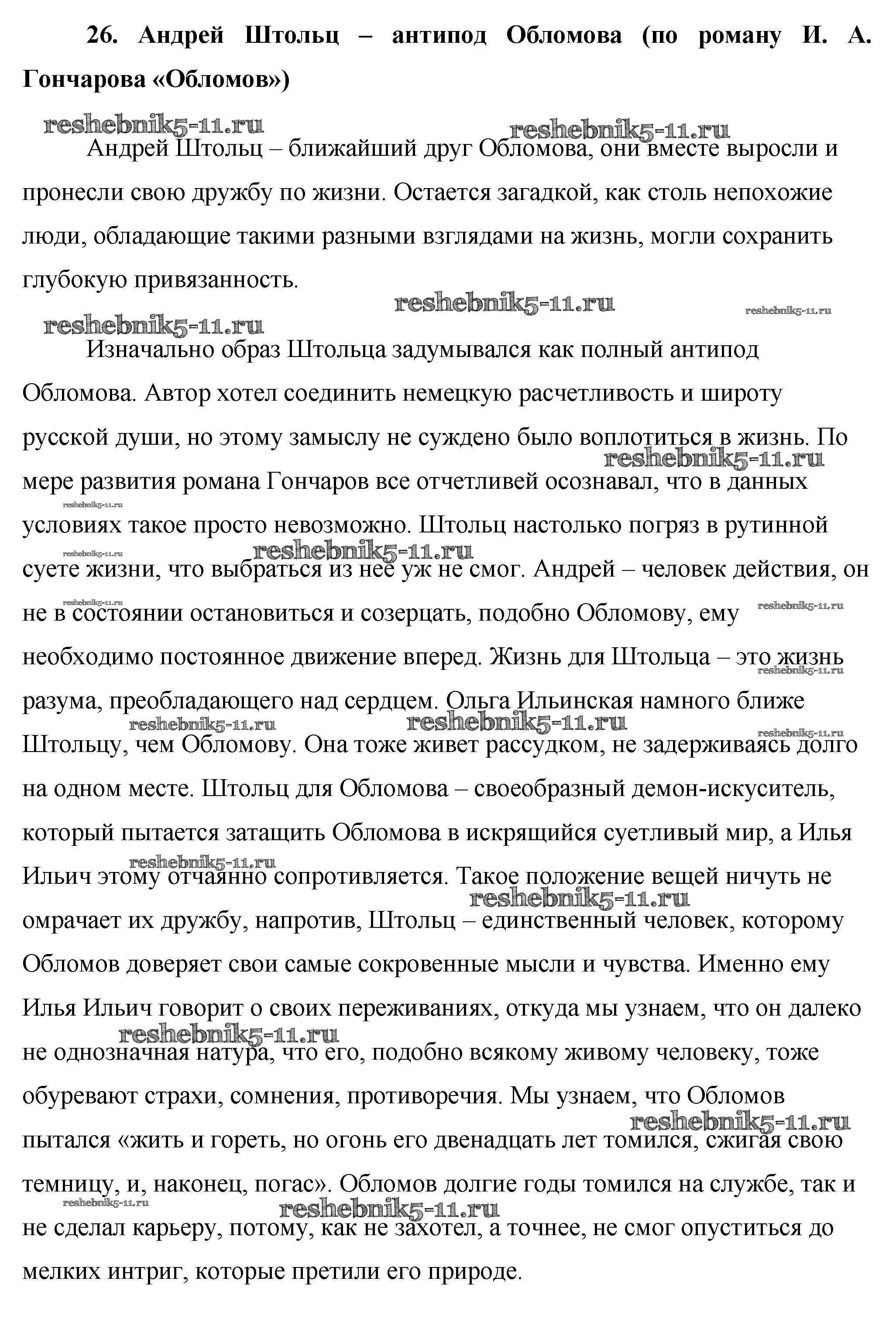 Готовая домашняя работа с ответами по Литературе за 10 класс Еременко Сочинения Сам себе репетитор ВАКО 2020 - Сочинения 26. Андрей Штольц – антипод Обломова (по роману И. А. Гончарова «Обломов»)