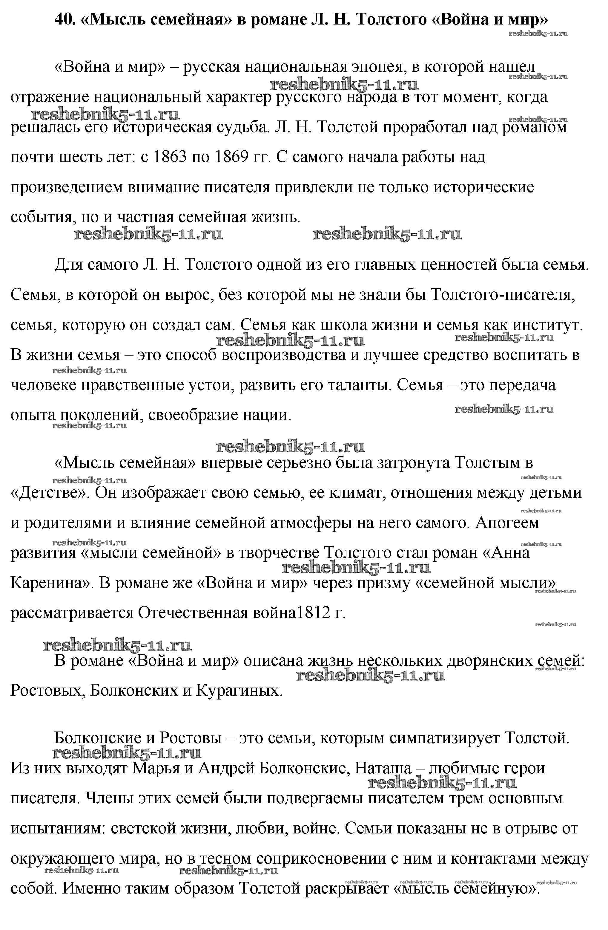 Готовая домашняя работа с ответами по Литературе за 10 класс Еременко Сочинения Сам себе репетитор ВАКО 2020 - Сочинения 40. «Мысль семейная» в романе Л. Н. Толстого «Война и мир»
