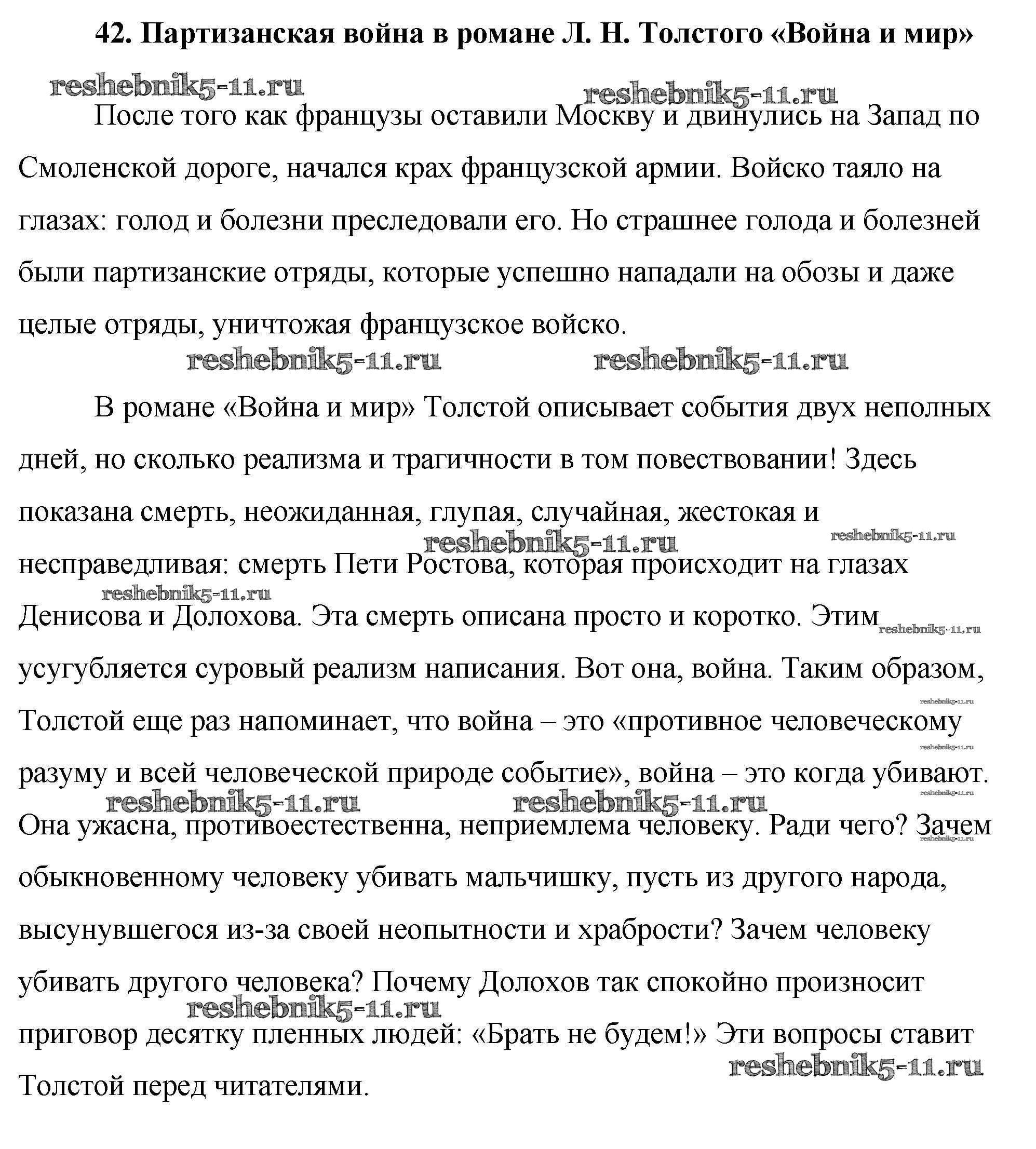 Готовая домашняя работа с ответами по Литературе за 10 класс Еременко Сочинения Сам себе репетитор ВАКО 2020 - Сочинения 42. Партизанская война в романе Л. Н. Толстого «Война и мир»