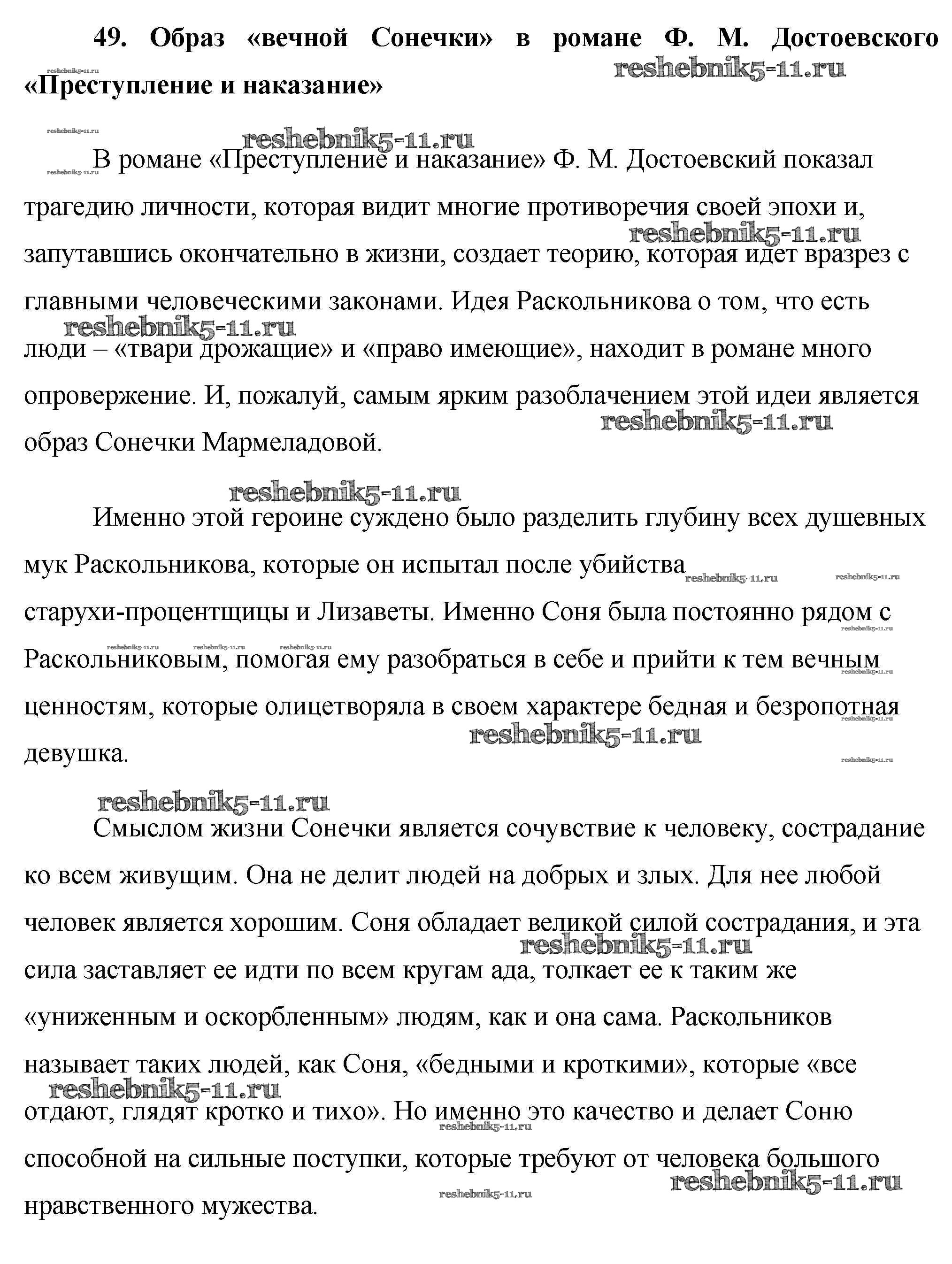 Готовая домашняя работа с ответами по Литературе за 10 класс Еременко Сочинения Сам себе репетитор ВАКО 2020 - Сочинения 49. Образ «вечной Сонечки» в романе Ф. М. Достоевского «Преступление и наказание»