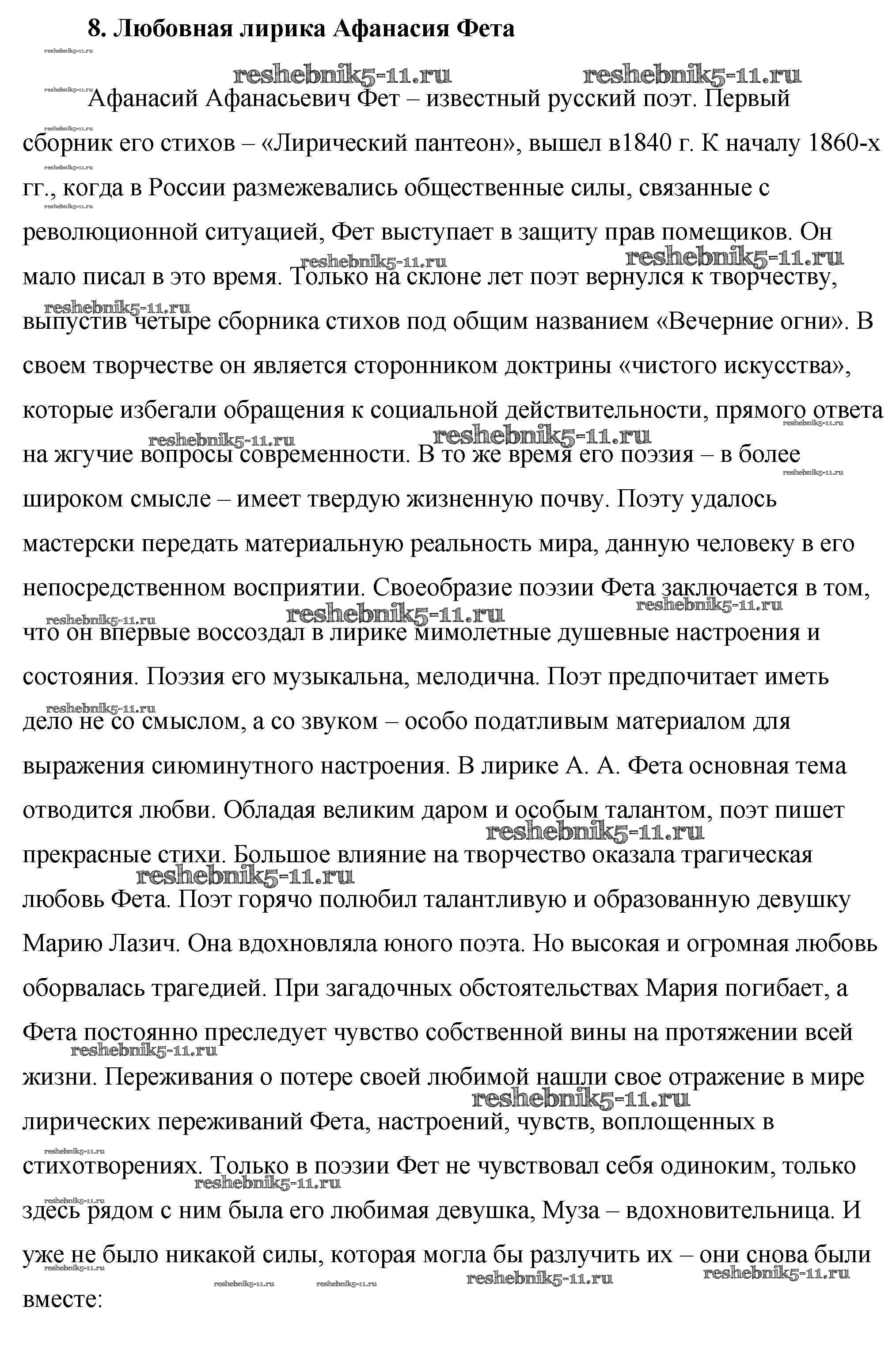 Готовая домашняя работа с ответами по Литературе за 10 класс Еременко Сочинения Сам себе репетитор ВАКО 2020 - Сочинения 8. Любовная лирика Афанасия Фета