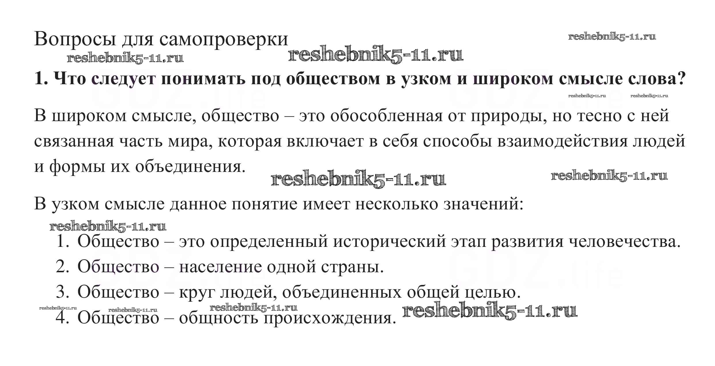 Готовая домашняя работа с ответами по Обществознанию за 10 класс Боголюбов, Аверьянов, Белявский, Иванова Учебник Базовый уровень Просвещение 2015 ФГОС - Вопросы для самопроверки 1
