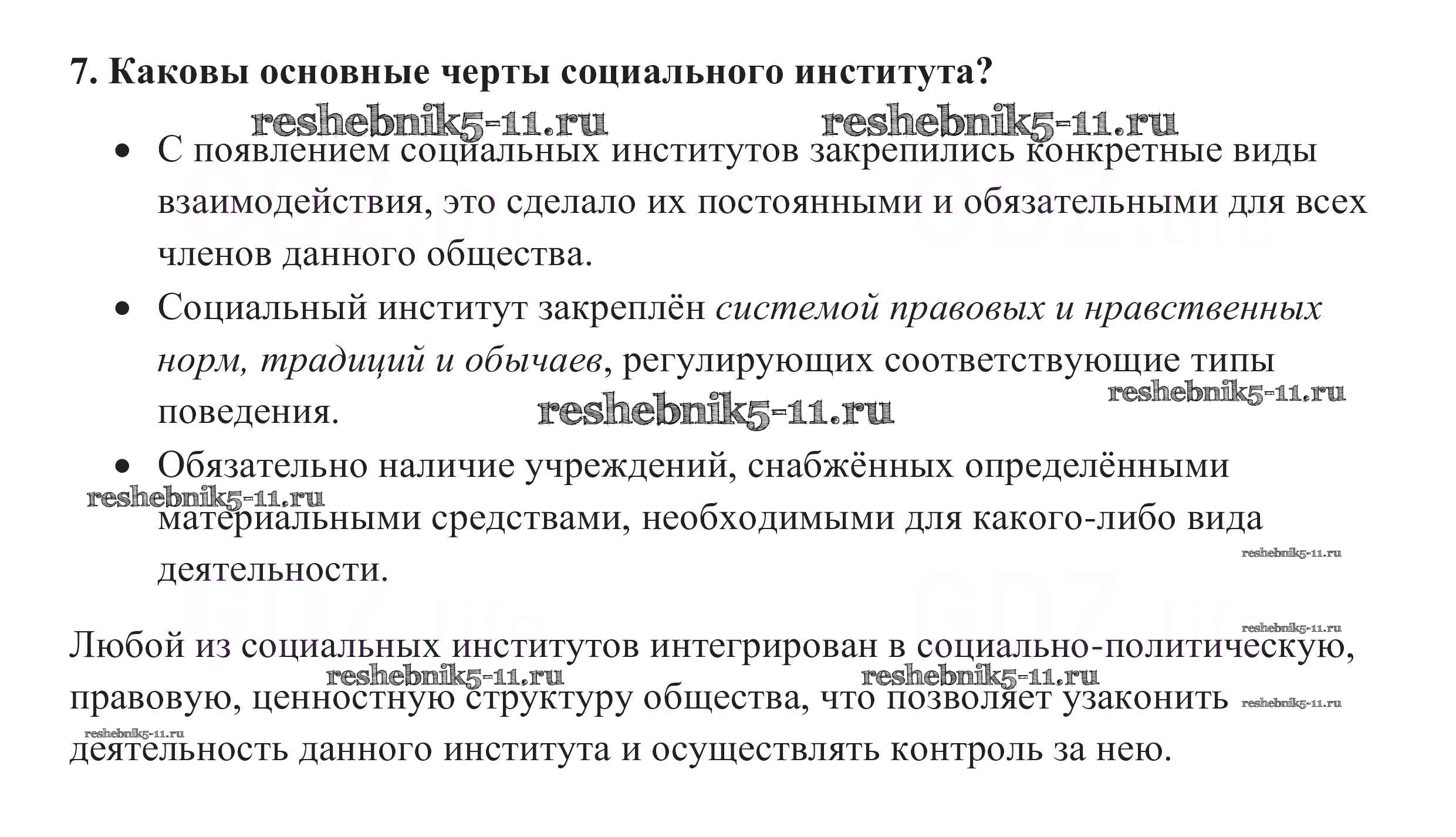 Готовая домашняя работа с ответами по Обществознанию за 10 класс Боголюбов, Аверьянов, Белявский, Иванова Учебник Базовый уровень Просвещение 2015 ФГОС - Вопросы для самопроверки 7