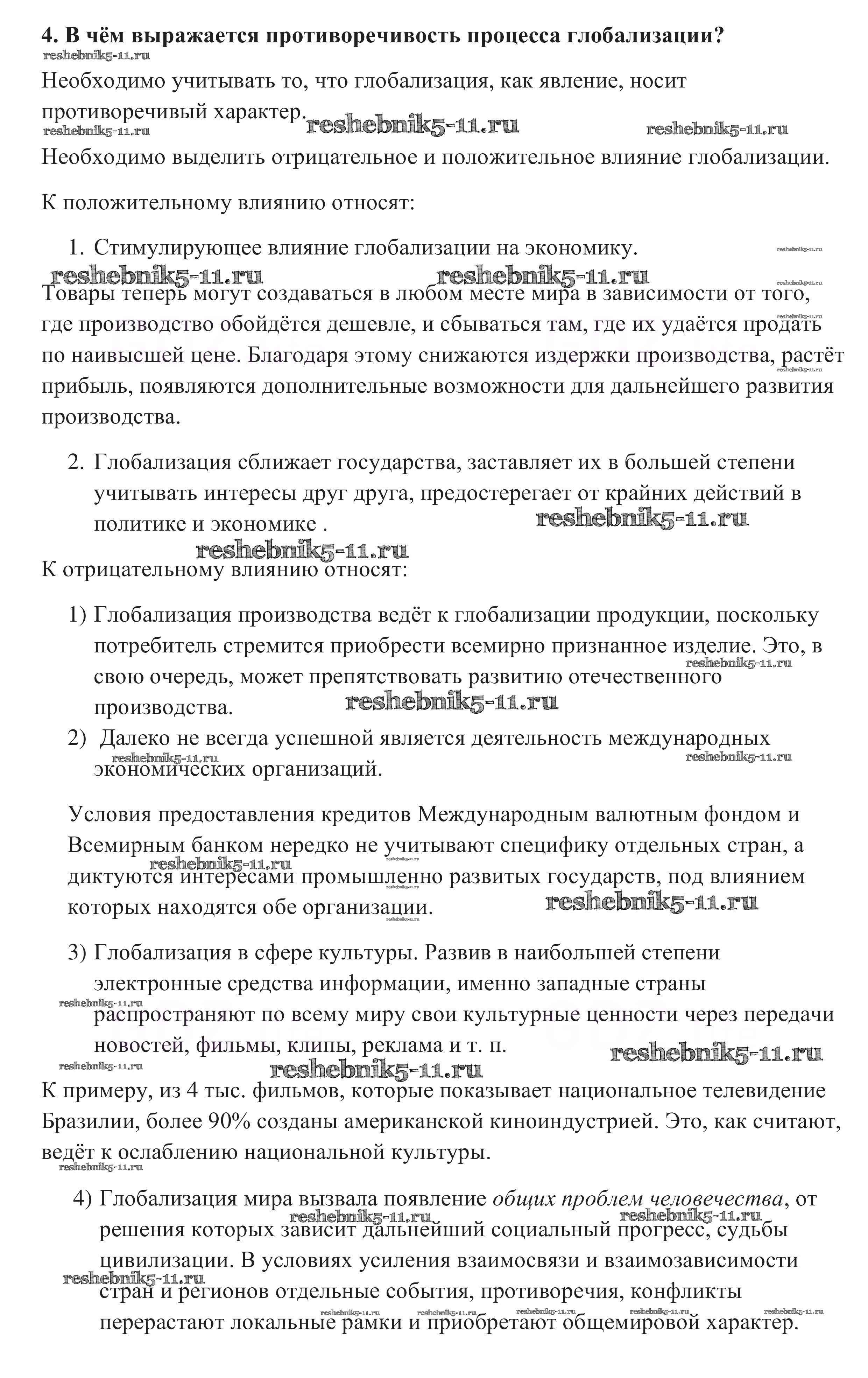 Готовая домашняя работа с ответами по Обществознанию за 10 класс Боголюбов, Аверьянов, Белявский, Иванова Учебник Базовый уровень Просвещение 2015 ФГОС - Вопросы для самопроверки 4