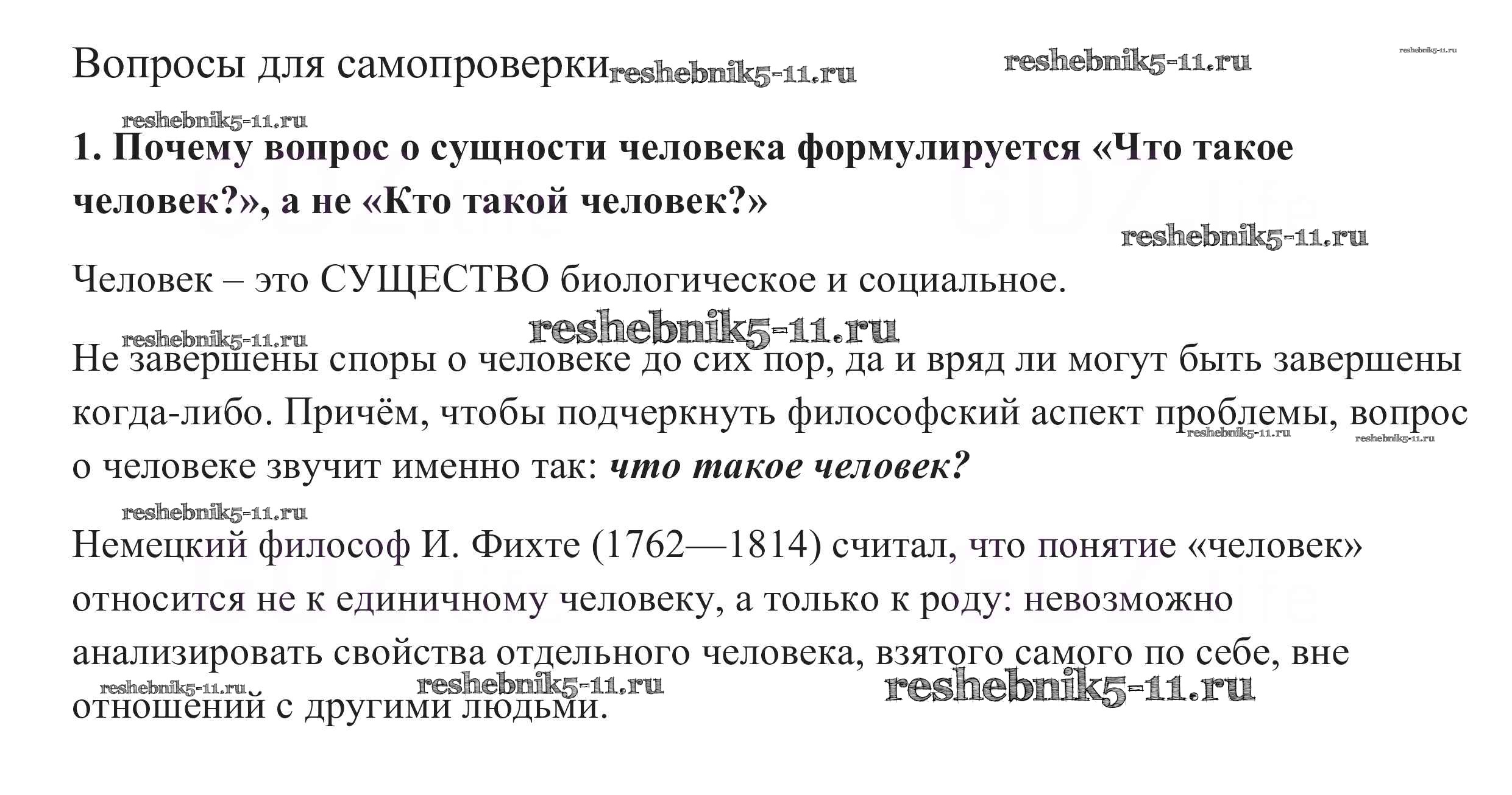 Готовая домашняя работа с ответами по Обществознанию за 10 класс Боголюбов, Аверьянов, Белявский, Иванова Учебник Базовый уровень Просвещение 2015 ФГОС - Вопросы для самопроверки 1