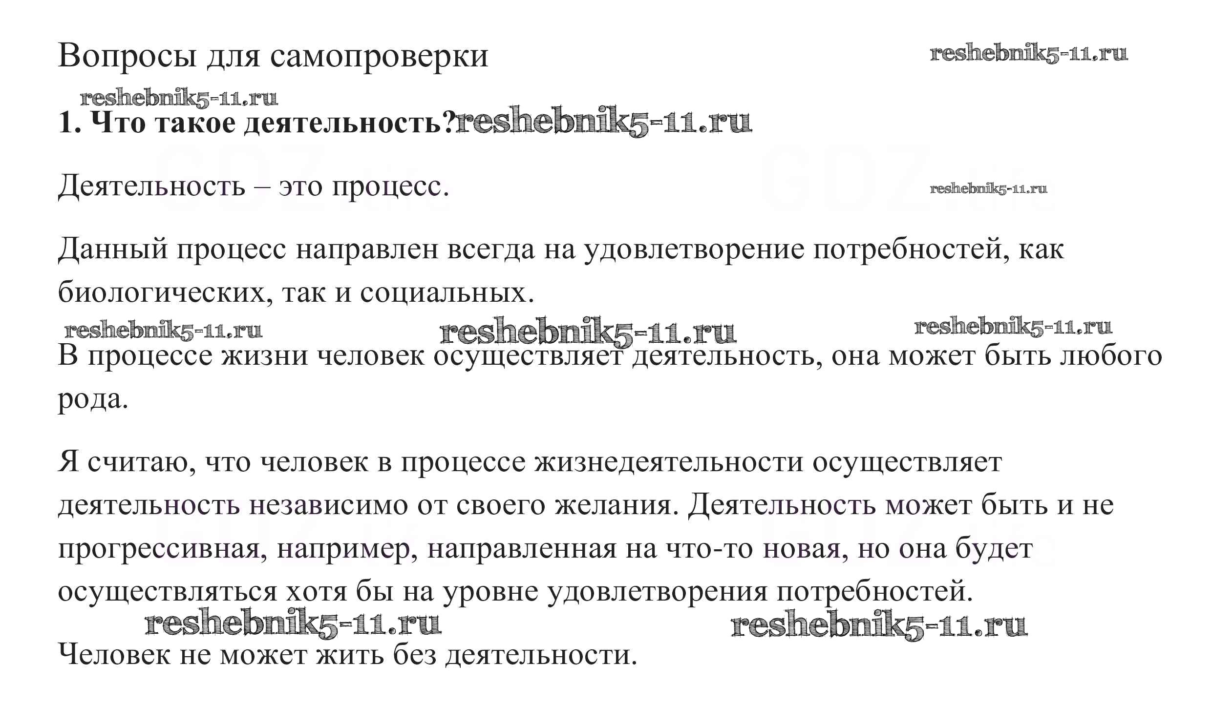 Готовая домашняя работа с ответами по Обществознанию за 10 класс Боголюбов, Аверьянов, Белявский, Иванова Учебник Базовый уровень Просвещение 2015 ФГОС - Вопросы для самопроверки 1