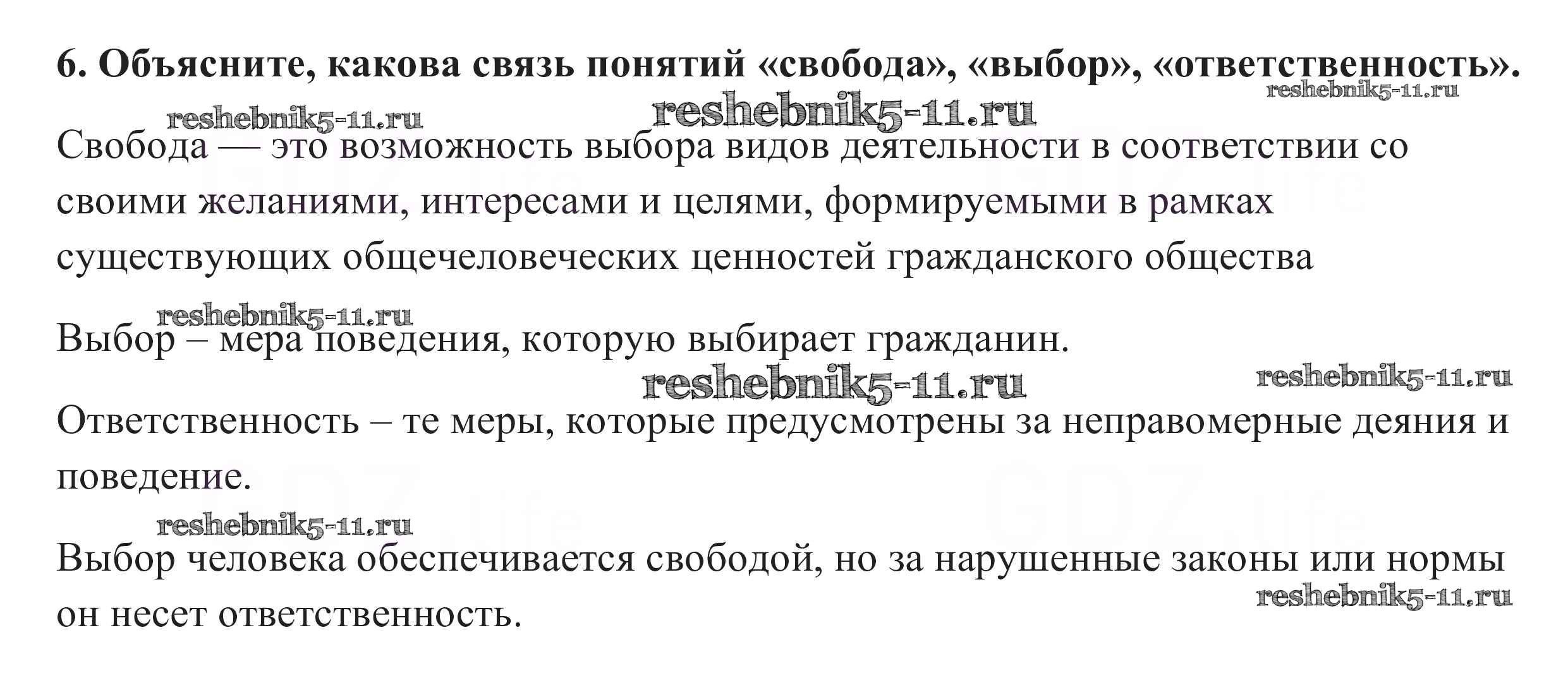 Готовая домашняя работа с ответами по Обществознанию за 10 класс Боголюбов, Аверьянов, Белявский, Иванова Учебник Базовый уровень Просвещение 2015 ФГОС - Вопросы для самопроверки 6